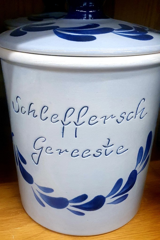 Die Schleffersch-Gereste haben ihren Ursprung in der Region Idar-Oberstein und heißt auf Hochdeutsch „Schleifers Geröstete“ und galt damals als „Armengericht.“ Die Kartoffeln und Fleisch – Schweinekamm, wurde in einem Steinguttopf im Wasserbad oder Ofen erhitzt. Um dieses Gericht zu machen, kann man einen Steinguttopf, Römertopf oder Hirtentopf nehmen. Auch hier hat der Topf regional einen anderen Namen. Wichtig ist nur, dass man einen Deckel auf dem Topf hat. Dies kann ein Teller oder Alufolie sein.