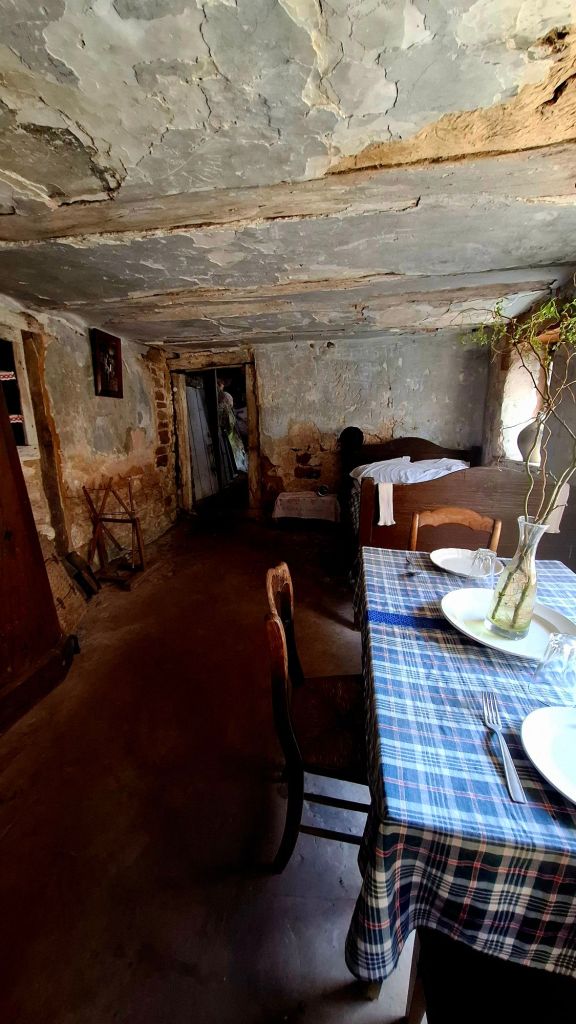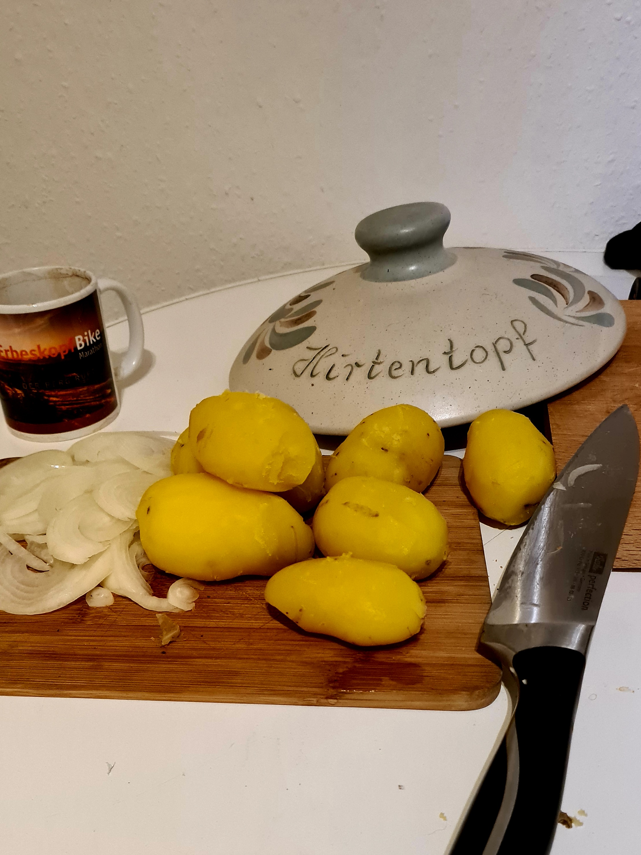 Für das Rezept für Schleffersch-Gereste braucht man – je nach Größe von dem Topf und Anzahl der Personen eineinhalb bis zweieinhalb Kilo Kartoffeln. Ein oder zwei mittelgroße Zwiebeln, 150 Gramm Dörrfleisch und Schweinekamm.