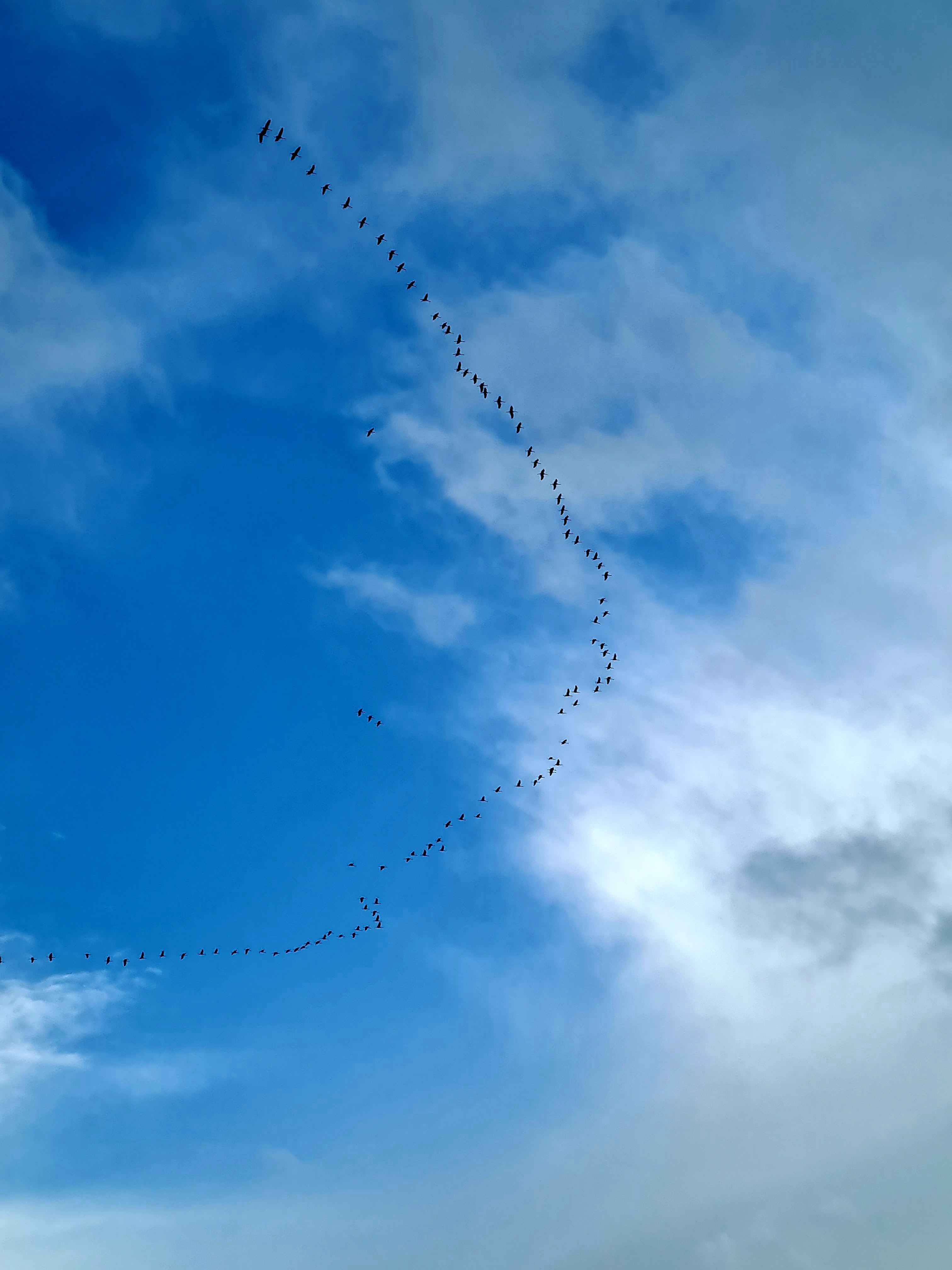 Jedes Jahr staunen wir gen Himmel, wenn zig tausende Kraniche auf der westeuropäischen Zugroute sich nach Westfrankreich, Spanien, Portugal oder gar Nordwestafrika aufmachen. Über zwei weitere Flugrouten fliegen nochmals die gleiche Anzahl an Vögel über die Baltisch-Ungarische Route nach Süditalien und weiter nach Westafrika.