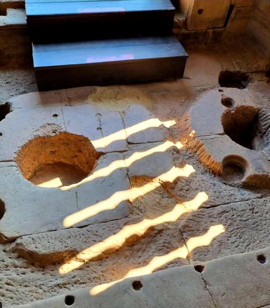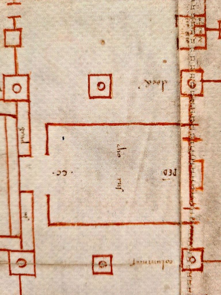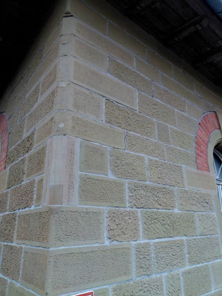 Das Gebäude hat Rundbogenfenster und drei gekuppelte Türen, wobei zwischen den Stützen eiserne Maueranker eingelassen sind. Die halbrunden Fensterfirste aus rotem Backstein sind mit einem markanten Schlussstein aus Naturstein versehen. Im Obergeschoss gibt es Segmentbogenfenster mit verzierten hölzernen Fensterläden, wobei die beiden mittleren Fenster über den drei Eingangstüren ebenfalls gekuppelt sind.