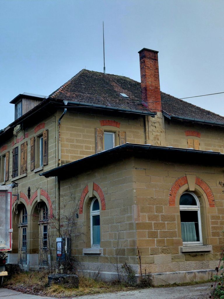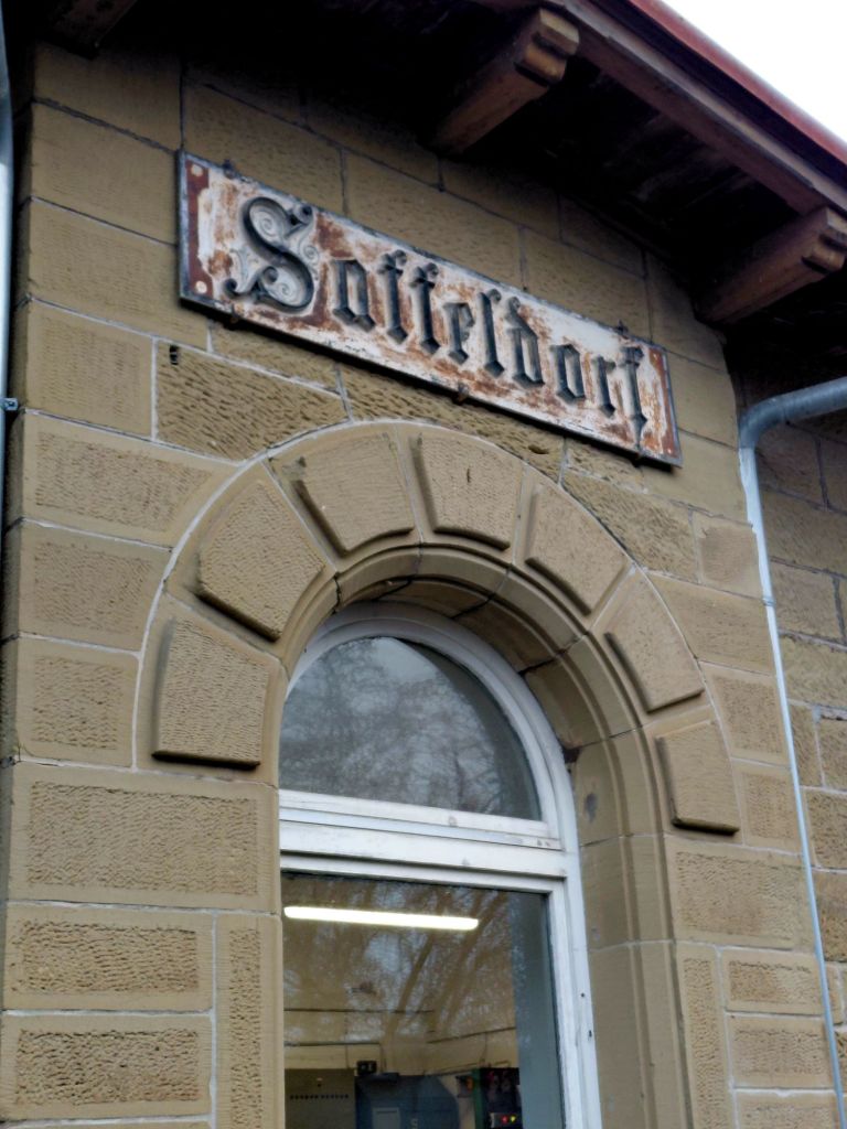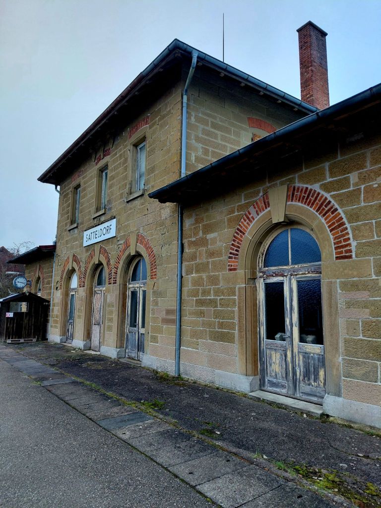 So wurde das Bahnhofsgebäude Satteldort im Stil der Frührenaissance gabaut. Das Bahnhofsgebäude aus dem Jahre 1869 hat ein zweistöckiges Gebäudeteil mit Walmdach. Die Anbauten links und rechts sind einstöckig mit Flachdach gebaut.