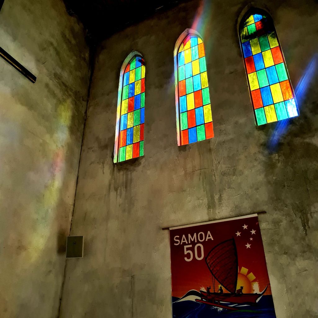 Der Nachthimmel der Erde wurde von einem Niederländer entworfen und über eine Bogenbrücke gebaut. Man geht von der Dunkelheit dem Sonnenaufgang in Samoa entgegen. Es ist echt unglaublich, wie diese Dunkelheit mit ihren Sterne auf einen wirkt. Noch von dem Licht der Sterne fasziniert, kommt danach die subtropische Hitze wie ein Hammerschlag voll auf einen zu.