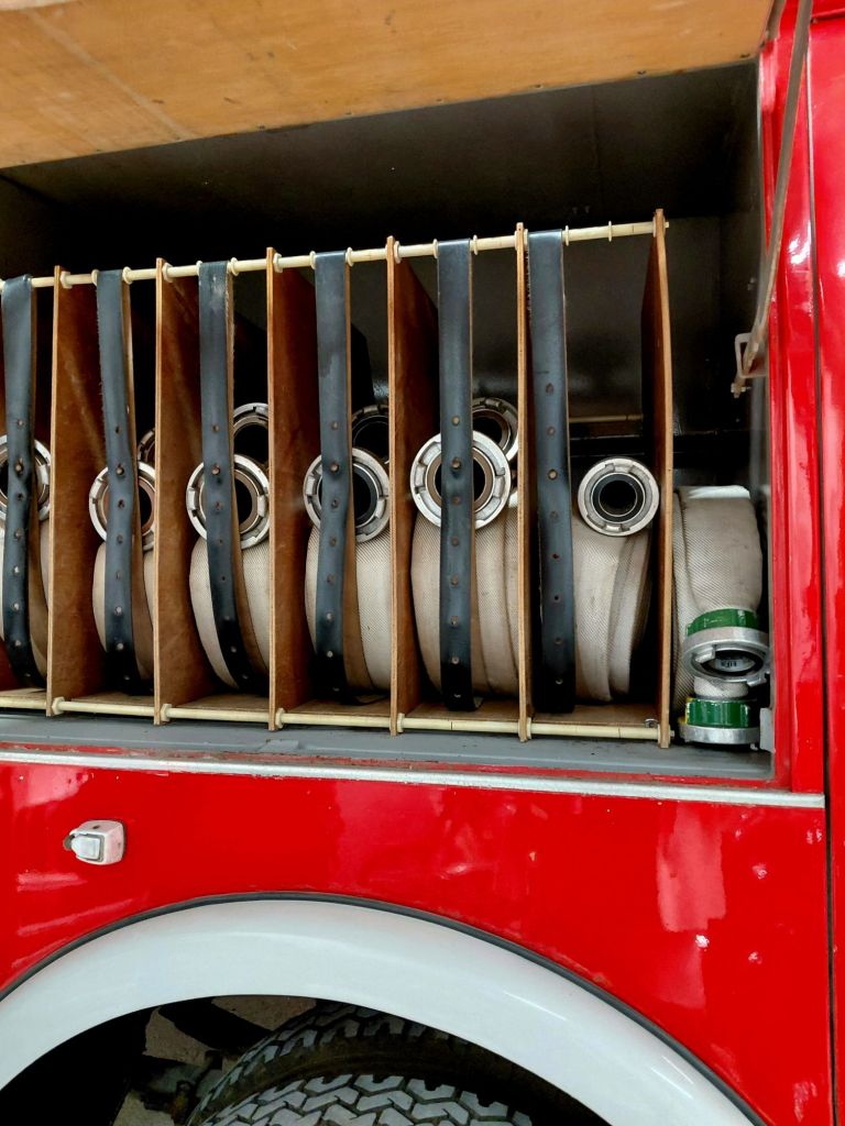 Dieses Biest aus den 60er und 70er Jahre wurde für den sehr schnellen Einsatz konzipiert. Mit seinen 5.000 Liter Wasser an Bord, konnte sofort mit der Wasserkanone der Brandherd bekämpft werden. Oder über die Anschlüsse am Heck Wasser für B und C-Schläuche gepumpt werden – selbstverständlich auch über A-Rohre angezogen werden, um mit der Wasserkanone zu arbeiten.