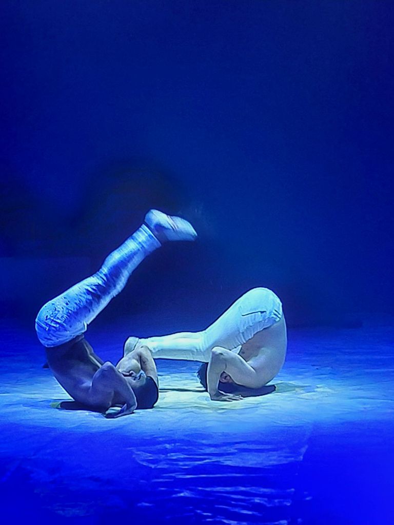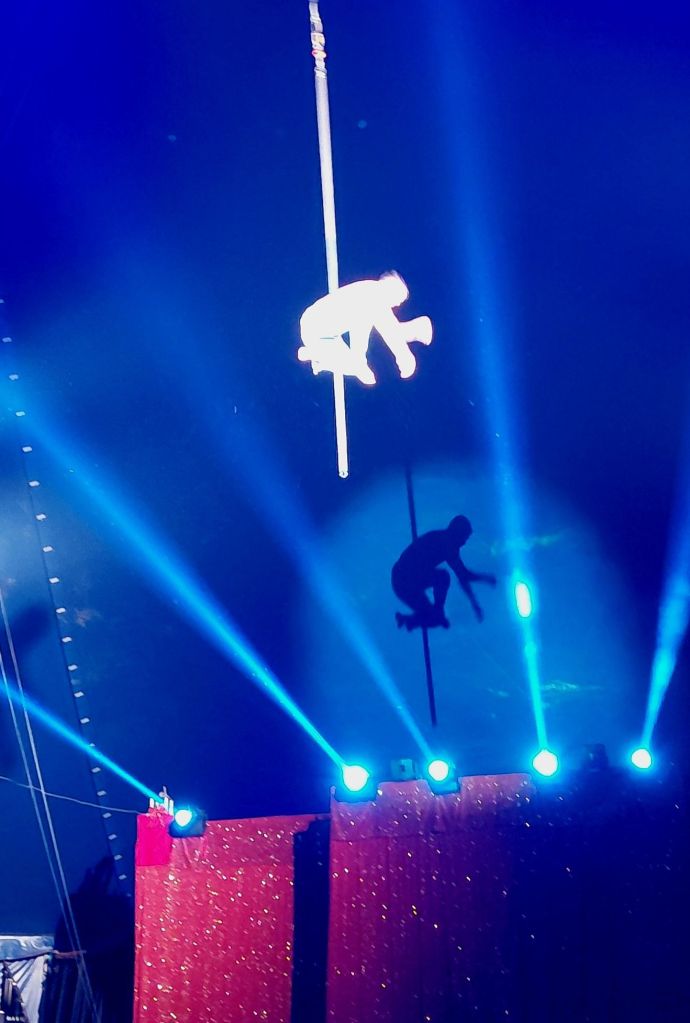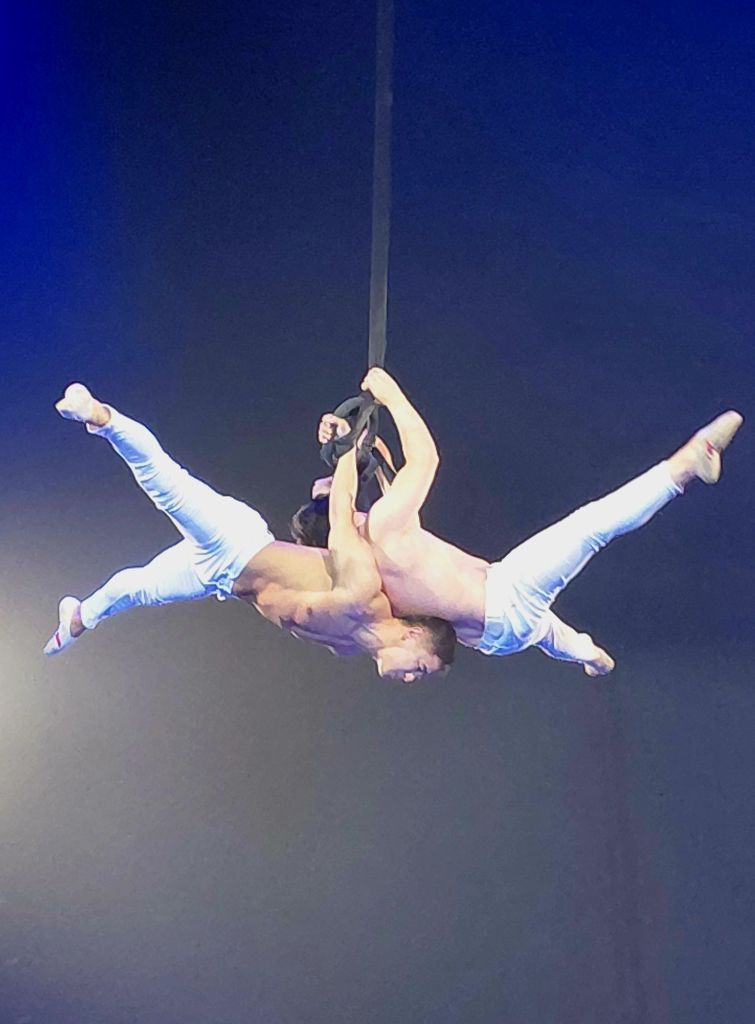 Nach der Pause war das Equilibristen-Duo Reflection vollständig und zeigte an den Strapaden eine eindrucksvolle und atemberaubende Show an Luftakrobatik und Synchronisation.