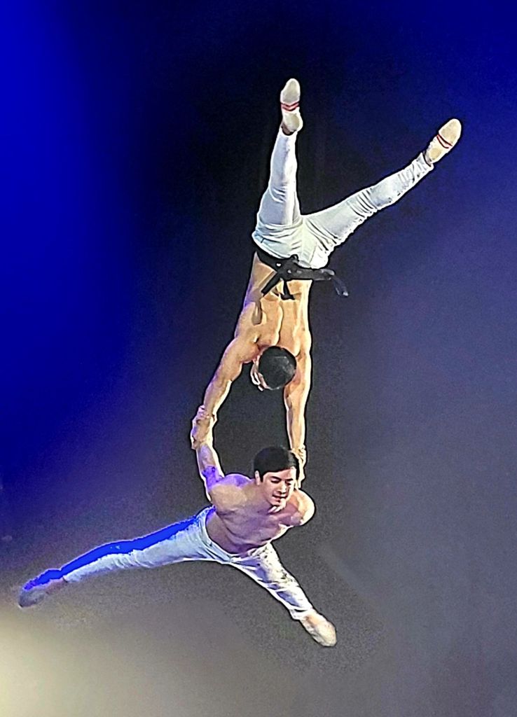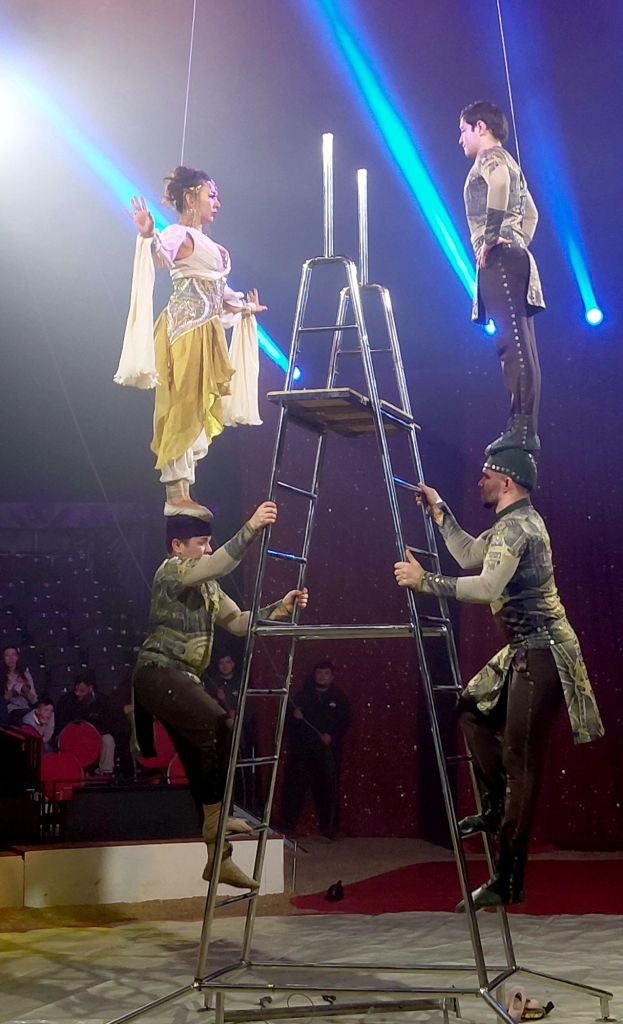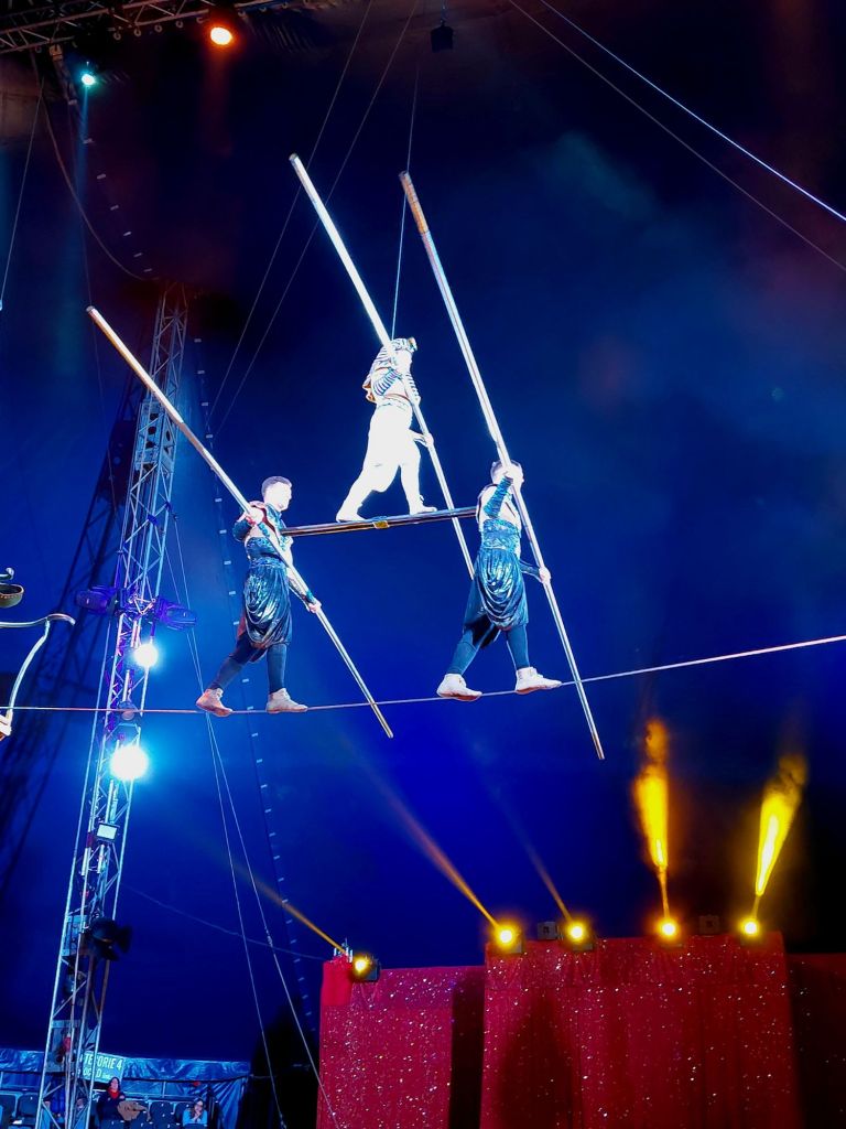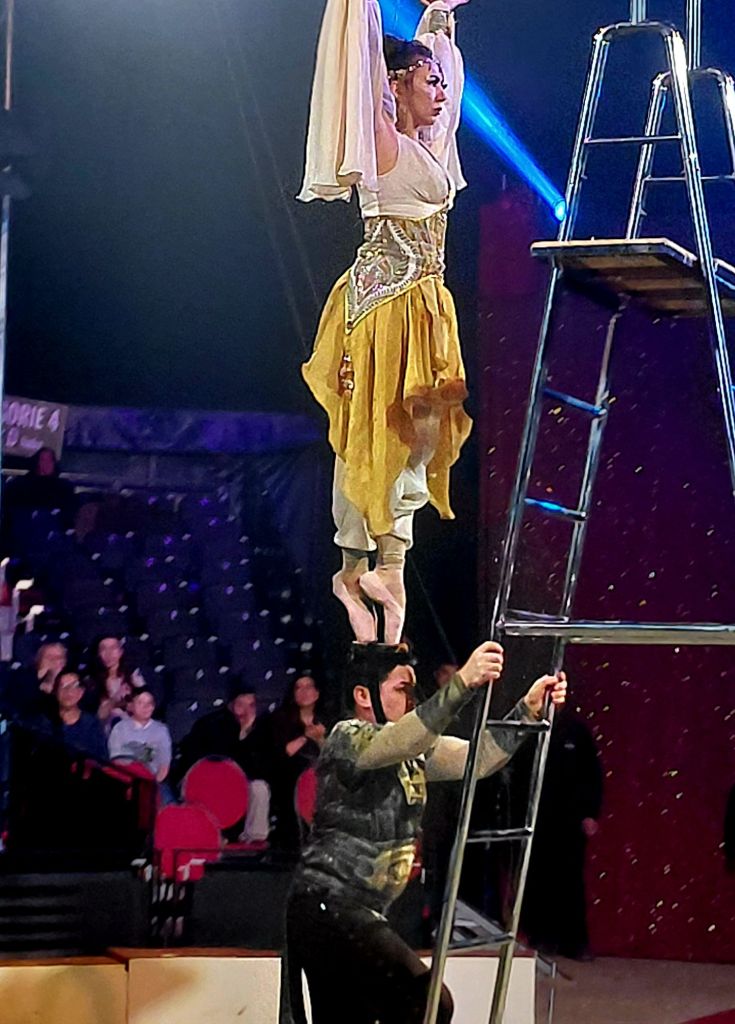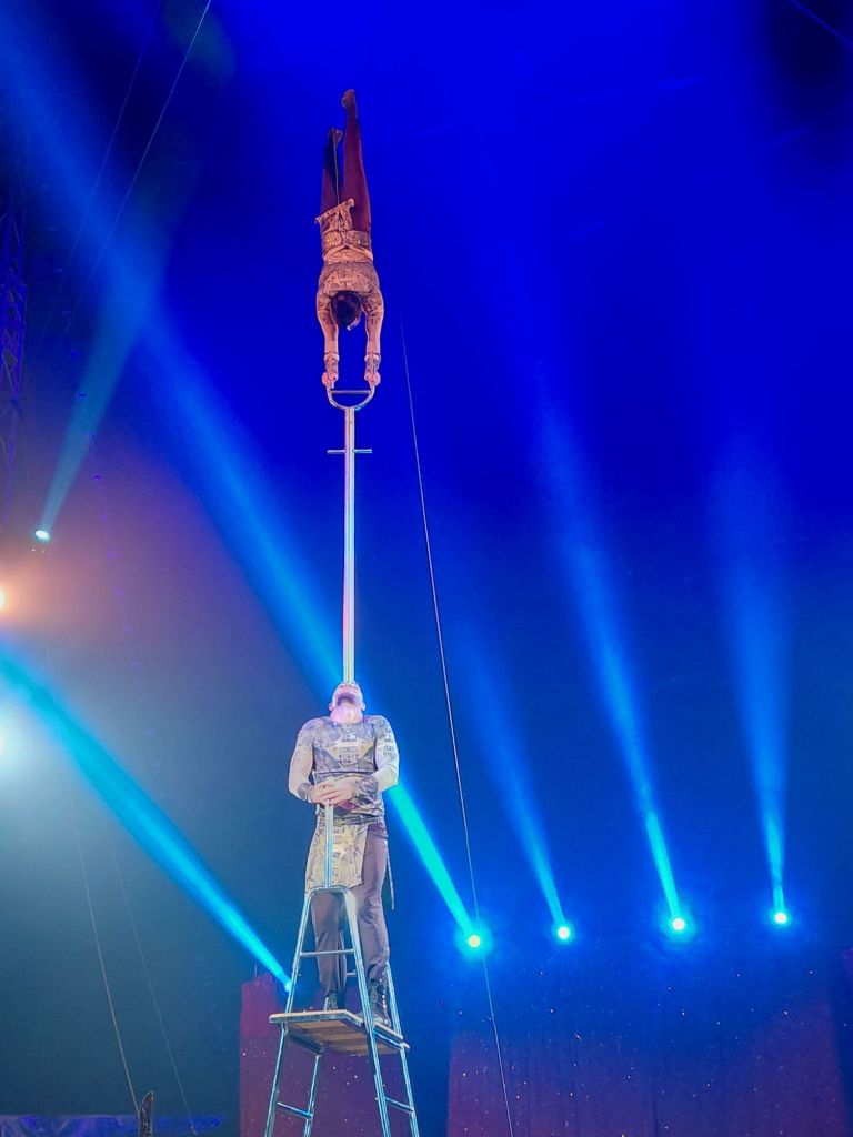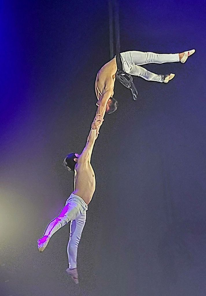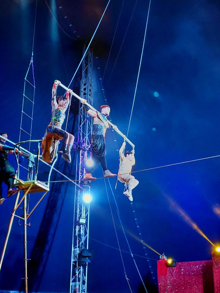 Die beiden Artisten Bekzod und Bobur verfügen über eine fundierte Ausbildung im Turnen und haben ihre sportlichen Fähigkeiten erst 2021 zu einer Zirkusnummer kombiniert. Was beide in schwindelerregender Höhe über der Manege zeigen, verdient definitiv das Prädikat Weltspitze.