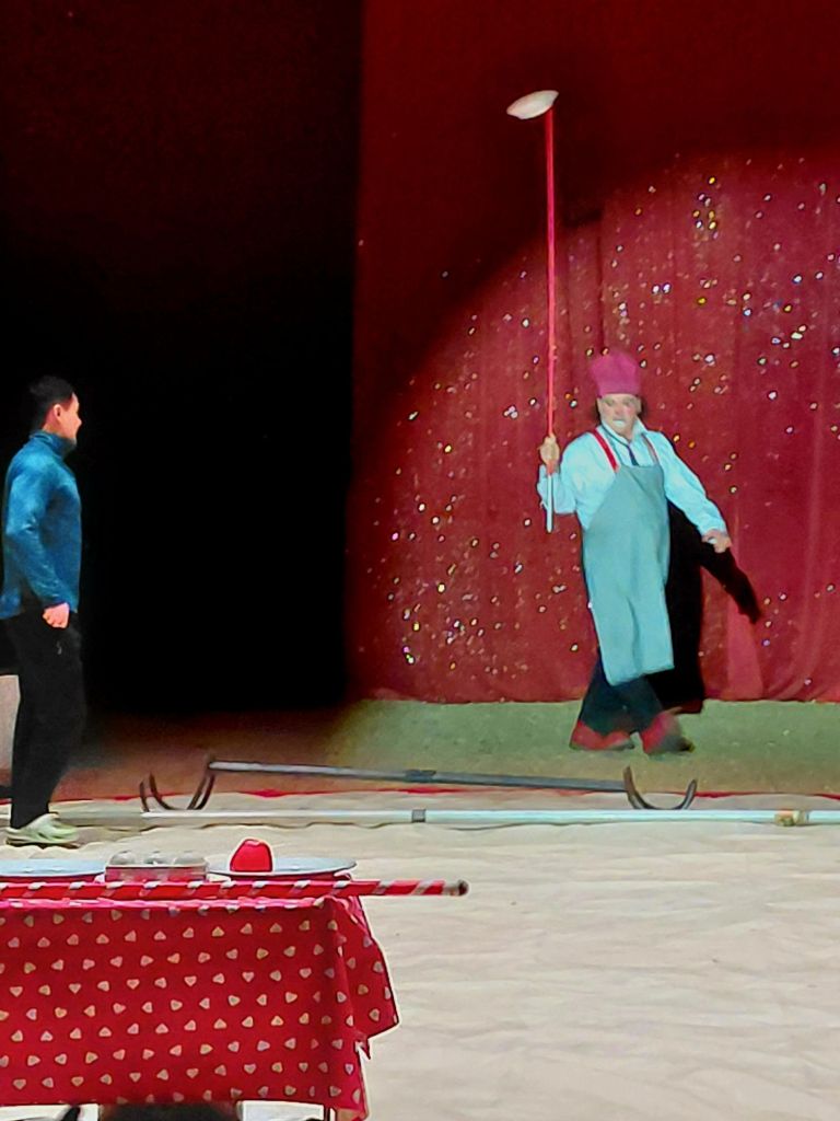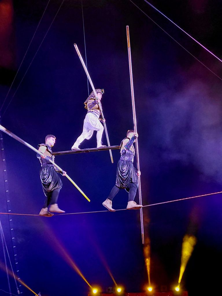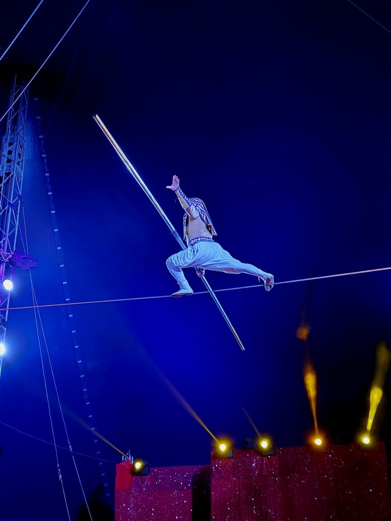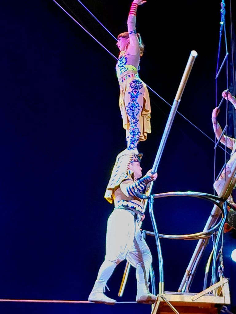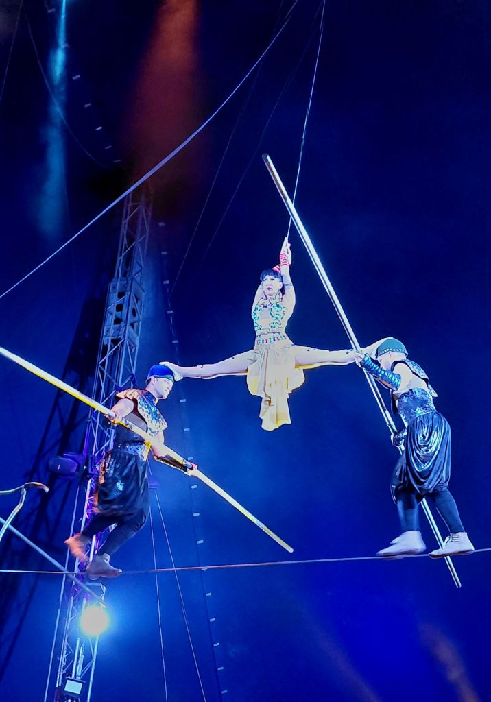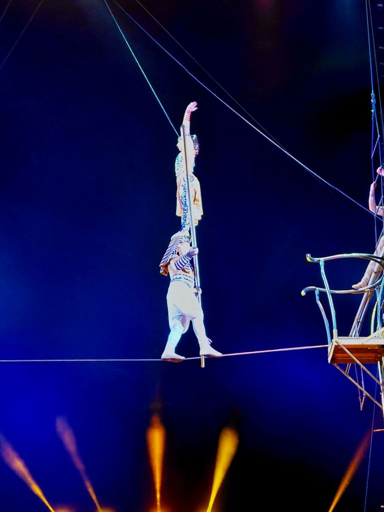 Die beiden Artisten Bekzod und Bobur verfügen über eine fundierte Ausbildung im Turnen und haben ihre sportlichen Fähigkeiten erst 2021 zu einer Zirkusnummer kombiniert. Was beide in schwindelerregender Höhe über der Manege zeigen, verdient definitiv das Prädikat Weltspitze.