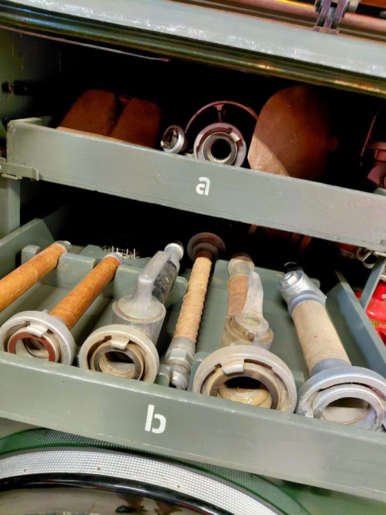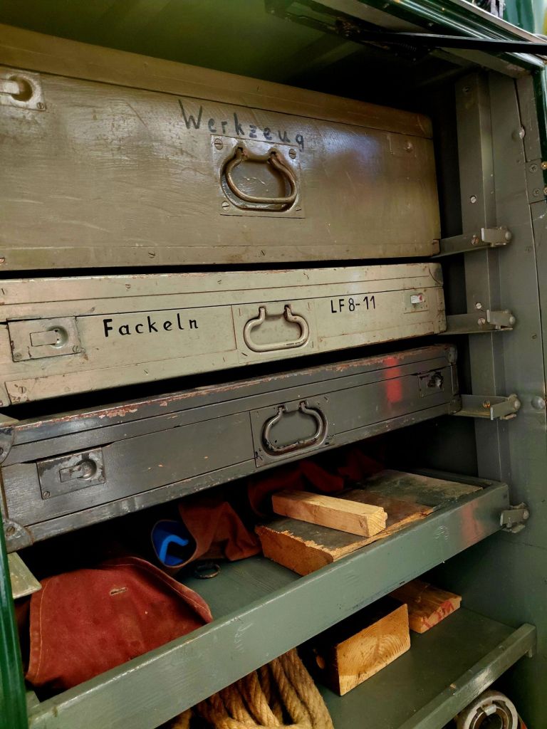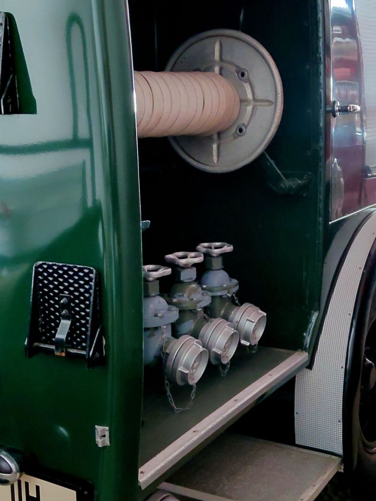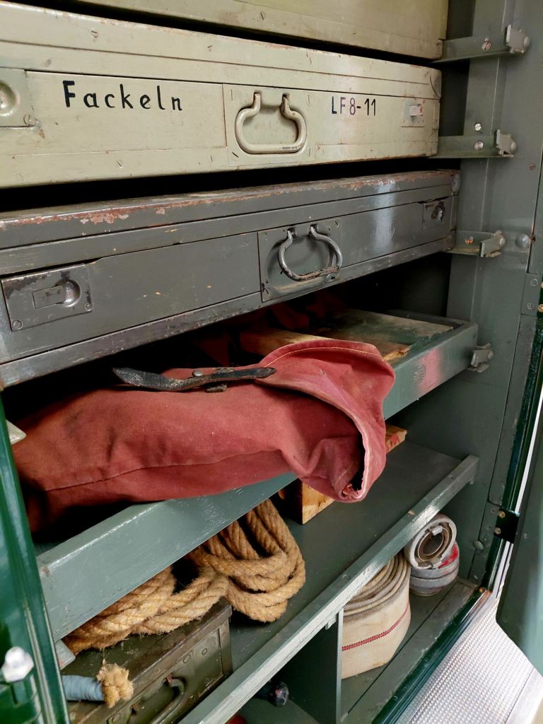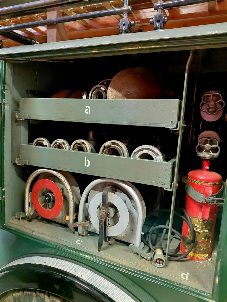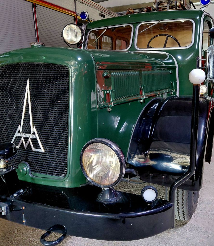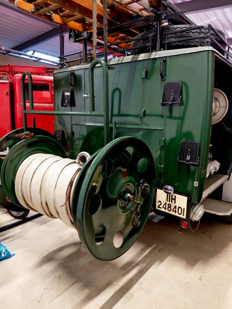 Der hier gezeigte Magirus FS 145 überstand den Zweiten Weltkrieg unbeschadet und war nach dem Krieg in roter Farbgebung bis 1975 im Dienst.