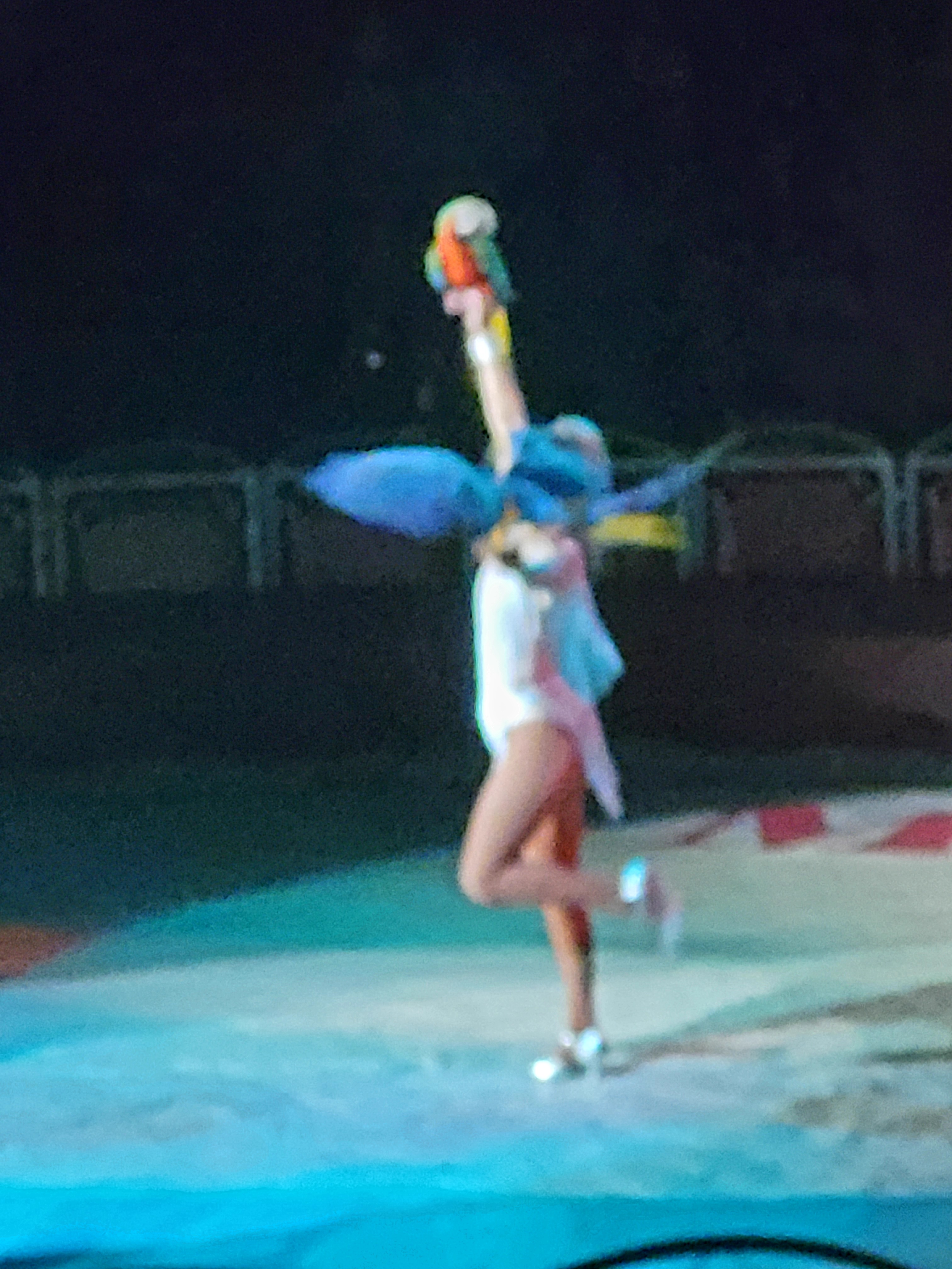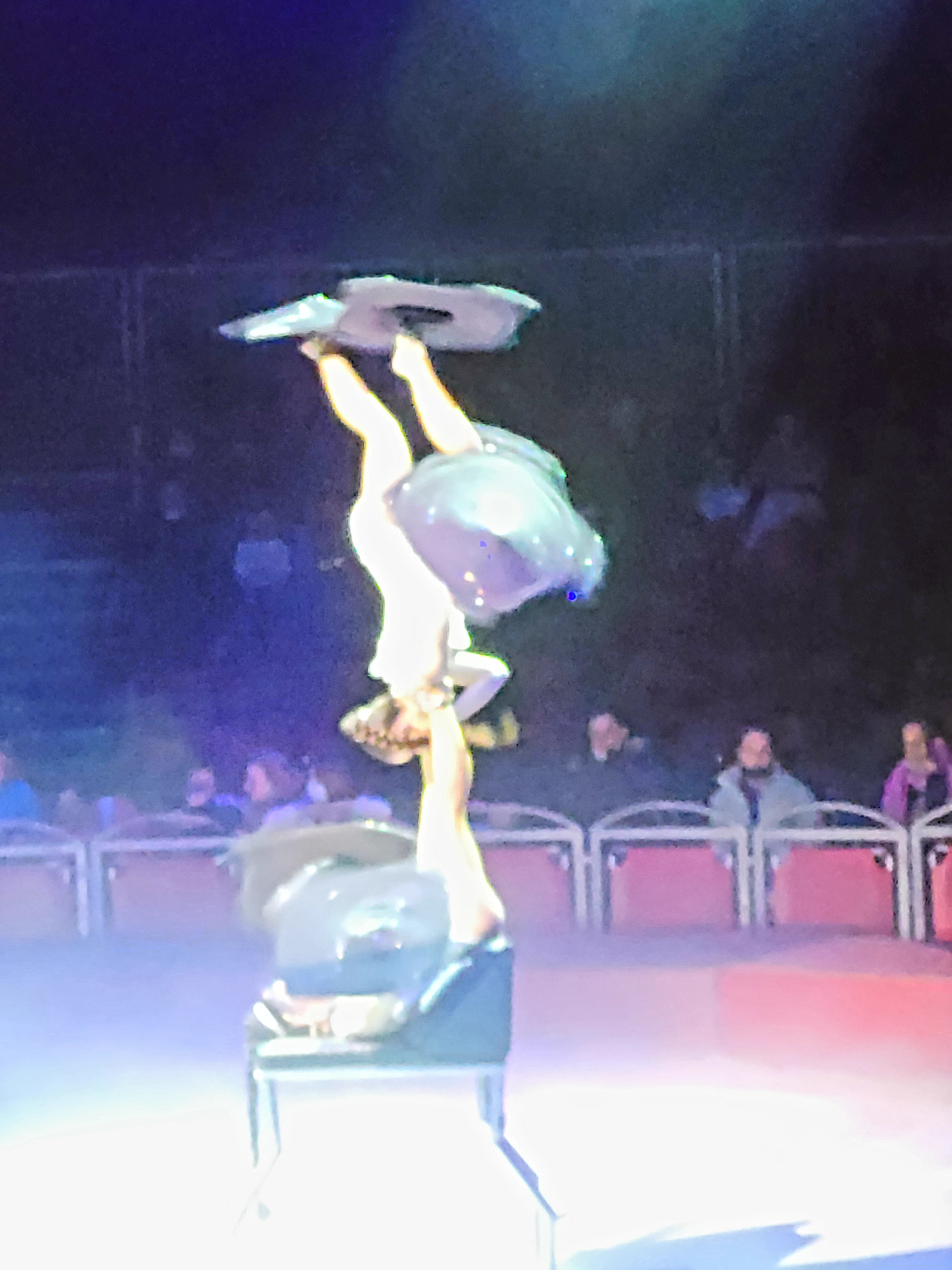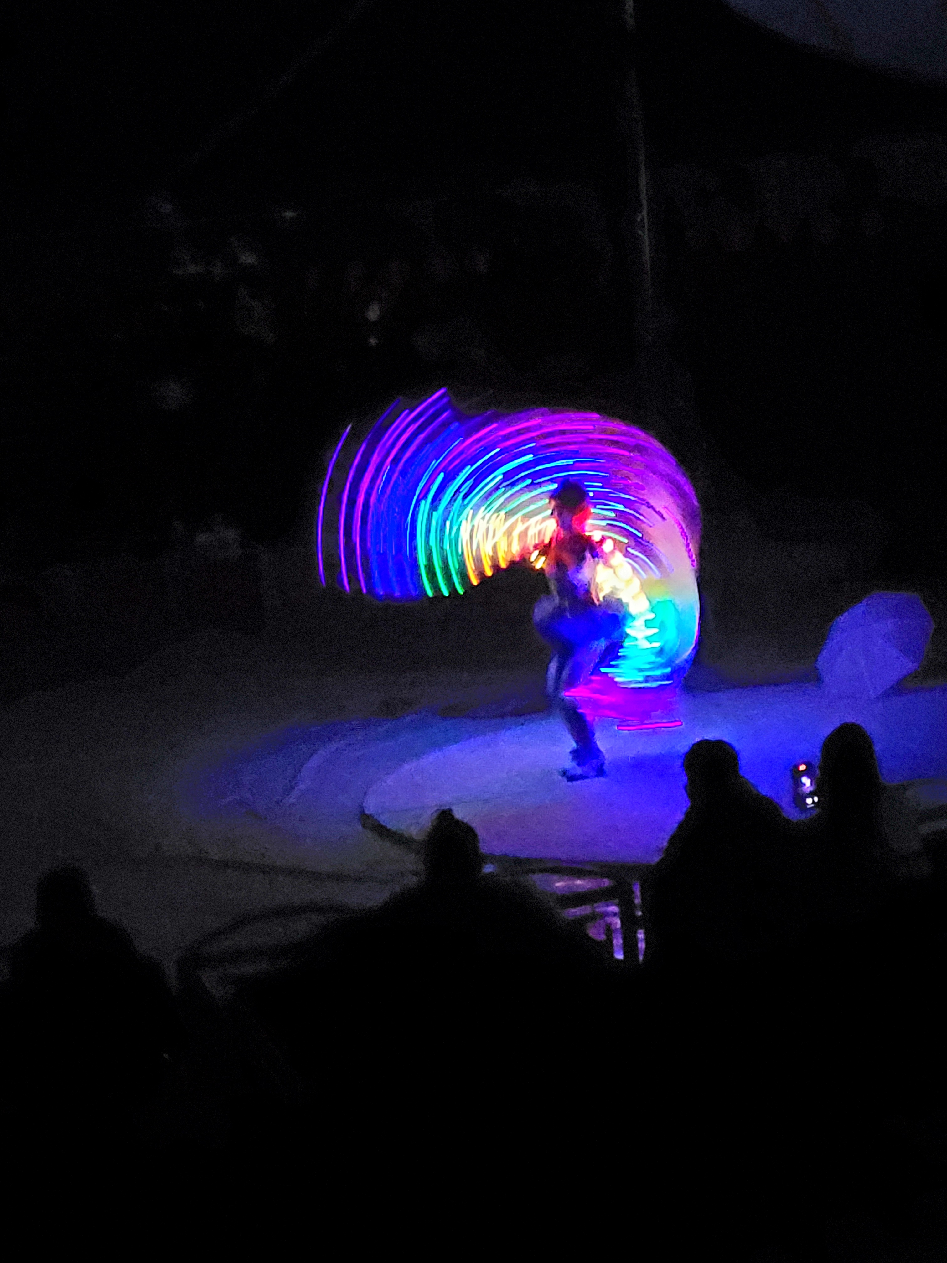 Die Show begann mit einer Hochseil Akrobatik von Akrobaten aus Kolumbien. Es ist immer wieder atemberaubend, was diese Menschen in schwinderregender Höhe mit einer Leichtigkeit zeigen. Der absolute Höhepunkt war die Menschliche Pyramide auf dem Hochseil.