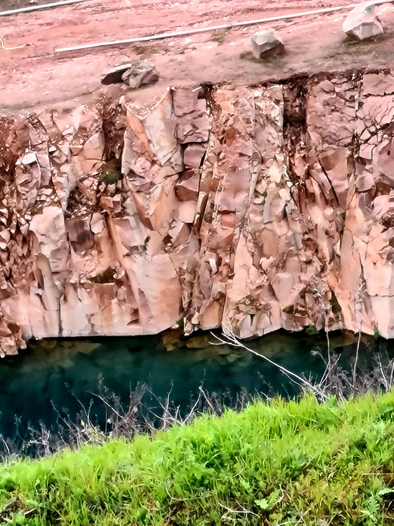 Das Plateau, also die Tischplatte hat ungefähr ein Gewicht von 300 Tonnen. Fast waagerecht und zu 100% ausbalanciert liegt diese Masse auf ausgeschwemmten Sandstein.