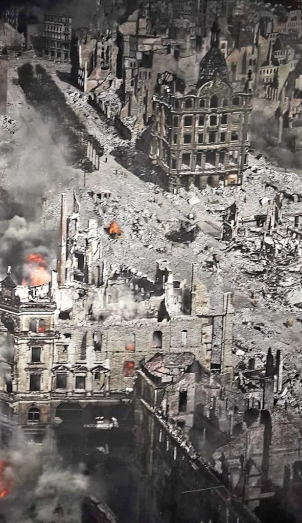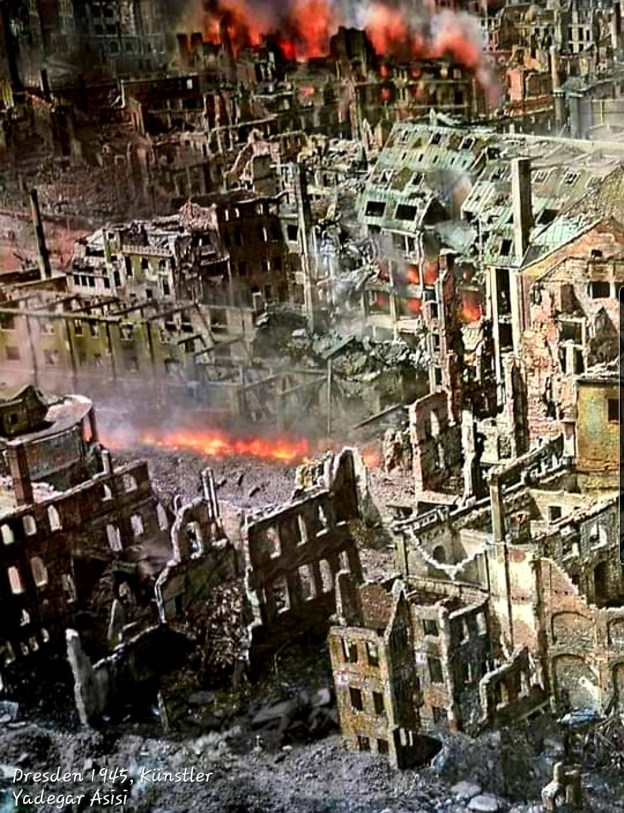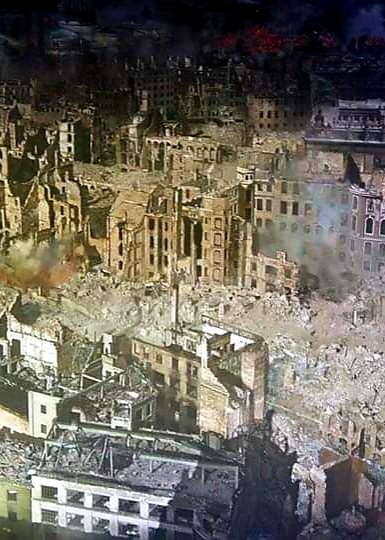 In der Nacht vom 13. auf den 14. Februar 1945 erfolgte auf das rund 630.000 Einwohner zählende Dresden einer der verheerendsten Luftangriffe auf eine Stadt im Zweiten Weltkrieg. 773 britische Bomber warfen in zwei Angriffswellen zunächst gewaltige Mengen an Sprengbomben ab. Durch die Zerstörung der Dächer und Fenster konnten die anschließend abgeworfenen Brandbomben eine größere Wirkung entfalten. Ihr Feuersturm zerstörte rund 80.000 Wohnungen, und ihre Hitzeeinwirkung deformierte sämtliches Glas in der Innenstadt. Dem britischen Nachtangriff auf die ungeschützte Stadt folgte am Tag die Flächenbombardierung durch 311 amerikanische Bomber.